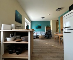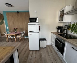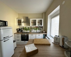Kochen wird in unserer gut ausgestatteten Küche zum Vergnügen! Genießen Sie modernste Geräte wie Ceranfeld, Backofen, Mikrowelle und Geschirrspüler. Ein reichhaltiges Sortiment an hochwertigen Töpfen, Pfannen und Küchenutensilien lässt keine Wünsche offen. Dazu kommen Kaffeemaschine, Standmixer, Wasserkocher, Toaster und sogar ein Sandwichtoaster – hier kann auch dank einer Grundausstattung an Gewürzen jeder Hobbykoch glücklich werden!