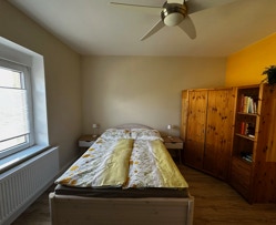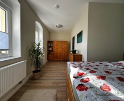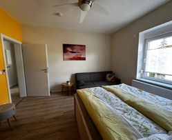 Schlafzimmer 1 bietet ein gemütliches Doppelbett (160 x 200 cm) und ausreichend Stauraum mit Kleiderschrank und Sideboard. Platz für ein Babybett ist ebenfalls vorhanden und wird von uns gern kostenlos zur Verfügung gestellt. Schlafzimmer 2 ist mit einem Doppelbett (140 x 200 cm) und einem Schlafsofa (120 x 190 cm) ausgestattet – ideal für die jüngeren Gäste oder zusätzliche Freunde.