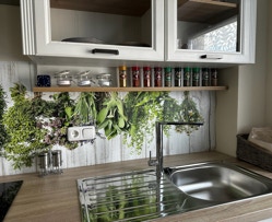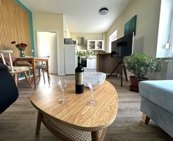 Der lichtdurchflutete Wohnbereich lädt zum Entspannen ein. Machen Sie es sich auf der bequemen Couch gemütlich oder nutzen Sie das Schlafsofa für eine zusätzliche Person. Der einladende Essbereich mit Tisch für bis zu 6 Personen ist perfekt für gesellige Abende. Die integrierte Kücheninsel ist nicht nur praktisch, sondern auch ein echter Hingucker!